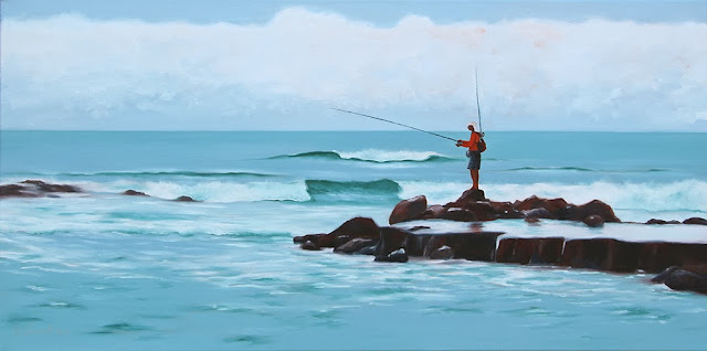 | The Fisherman. 20"x40" original oil on gallery wrap canvas. |